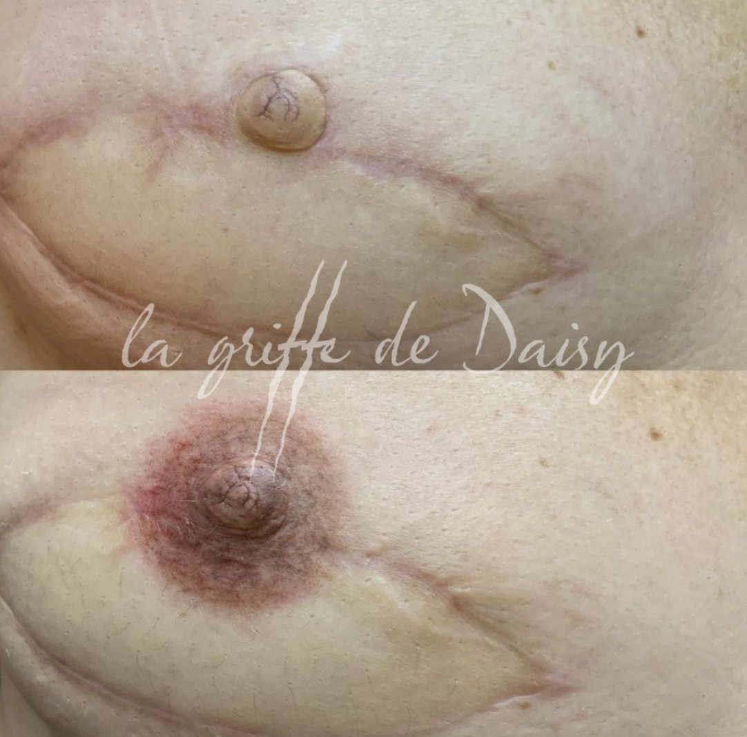 Au sein du centre La Griffe de Daisy à Sion, nous réalisons également des prestations de dermopigmentation réparatrice après cancer du sein, notamment la reconstruction d’aréole mammaire.